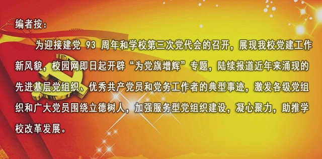 近年来,信息工程学院党委坚持围绕中心、服务大局,按照“教学立院、科技强院、党建兴院、管理塑院”的办学思路,充分发挥学院党委的政治核心作用、党支部的战斗堡垒作用和党员的先锋模范作用,紧紧围绕立德树人这一根本任务,创新人才培养模式改革,不断提升学院核心竞争力,有效促进学院科学发展。2014年,信息工程学院党委被评为全省高校先进基层党组织。