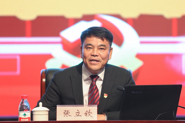 10月21日下午,校长张立钦在中校区音乐厅给师生上了题为《初心如磐 使命在肩——牢记总书记殷切嘱托 创建高水平师范大学》的主题教育专题党课。省委第五巡回指导组成员、省纪委省监委驻省教育厅纪检监察组副组长黄根来,省委第五巡回指导组成员、省社会主义学院教务处副处长杨朔江到课指导。在校的校领导班子成员出席,全体中层干部、科级干部,各基层党支部书记,二级学院系部主任、教研室主任,师生党员代表等到场聆听了党课。本次专题党课由校党委副书记蒋云良主持。