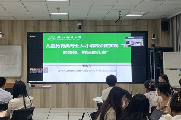 近日,教育部人文社科重点研究基地北京师范大学教师教育研究中心长三角分中心、教师教育学院开启久久精品一区二区太湖品学教师教育学科前沿论坛系列第三讲“儿童教育类专业人才培养如何实现‘面向完整、鲜活的儿童’”。主讲嘉宾为浙江师范大学国际儿童研究院院长暨儿童发展与康复重点实验室主任、中加人类发展联合实验室中方执行主任、中国学前教育研究会理事长秦金亮教授。副校长舒志定主持讲座。讲座采用线上线下相结合的方式,200余名老师同学参加了讲座。