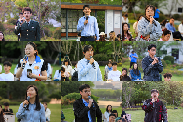 在校友中心南面草坪举办的“青爱的思享汇”青春故事交流分享活动中,信息工程学院曹润龙同学介绍了自己锚定伪装目标检测领域取得世界领先重大成果的创新之路,表示将在南京理工大学攻读博士期间潜心科研攻关、服务国家战略需求。生命科学学院易少奎老师分享了自己与水产专业结缘并相伴成长的奋斗历程,表示每个专业都有独特的社会价值,建议同学们坚持在专业领域深耕细作。音乐学院张志伟同学介绍了自己作为中共预备党员、退役大学生士兵、音乐学院学生会执行主席三种身份背后的故事,表示将继续践行“为人民服务”的初心,在“把小事做好”的路上继续走下去。9名青年师生代表结合各自身份分享了自己与湖师共成长的故事,鲜活讲述了湖师青年科研学习、就业升学、志愿实践等奋斗事迹。